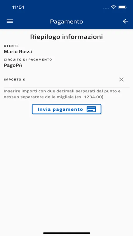 L'app permette di visualizzare i dati del comune e di selezionare la lingua di visualizzazione (italiano o inglese)
