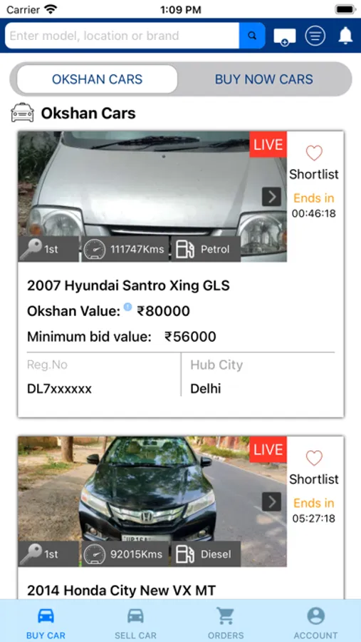 There are two options to buy and sell. Buy Now cars is a concept where in cars are listed at a fixed price, buyers can instantaneously buy at the listed price or leave an offer. Okshan team shall take the offer and try to close the deal with seller.