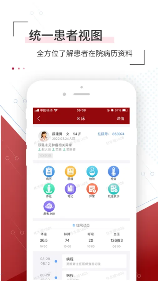 北肿云医生根据医护人员的移动应用场景,针对在院患者提供移动查房、知识库等实用功能与服务,帮助医院和医务工作者提升工作效率。