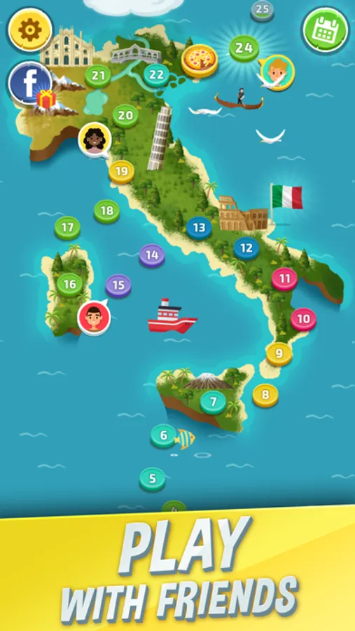 Enjoy your journey around the world and find the hidden treasures. Sign into Facebook to compete with friends and track their progress.
