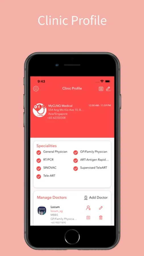 This application is mainly a receiver side which is for Clinic. Clinic able to create and manage a profile for clinic and doctor,