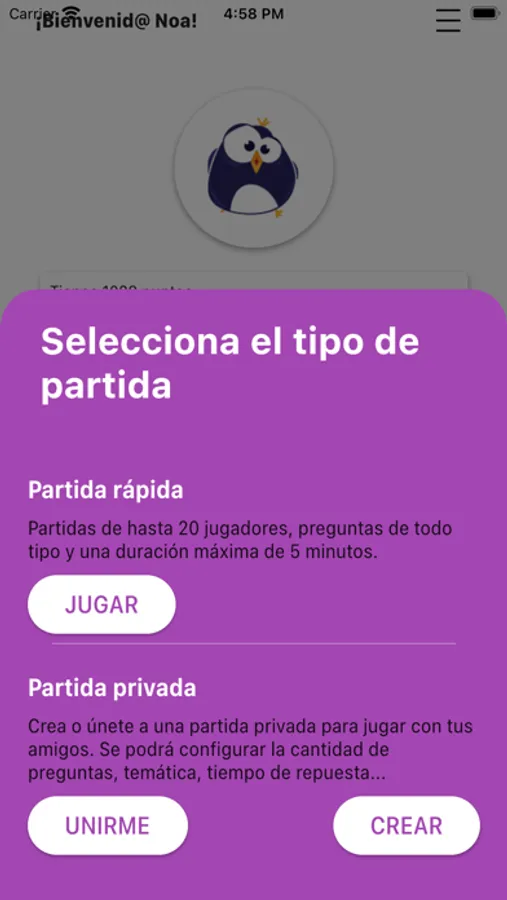 - Private game: Create or join a private game to play with your friends. You can configure the number of questions, theme, response time ... and also it does not matter how big or small your group of friends is, since in this mode you can play up to 50 friends.