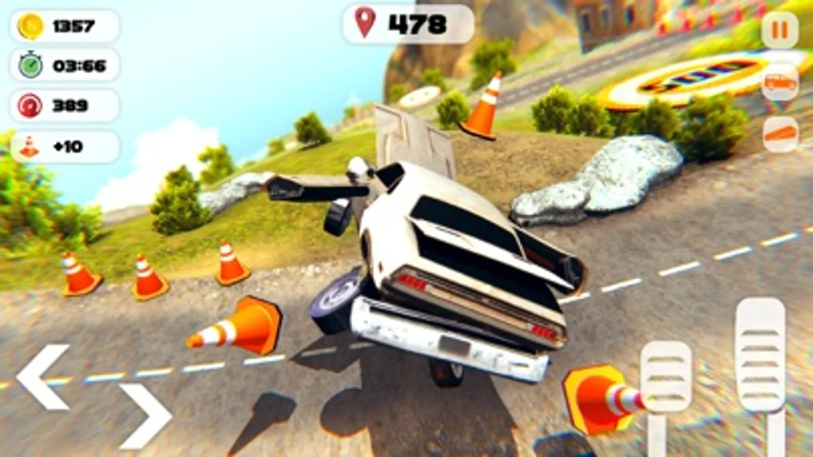 Drive fast & reach peak point of crash. Because the distance between road to road can help in crash. Enjoy Meadows of northern areas with distance crash & be the master of long ramp. The maximum distance help to reach the last point of crash. But for unlock the new vehicles Bugatti, Mustang, LeMan, Ford, Cougar and Truck collect all diamonds & check points. The long ramps with multiple environment totally free for crash lovers with car crash leap of death arena.