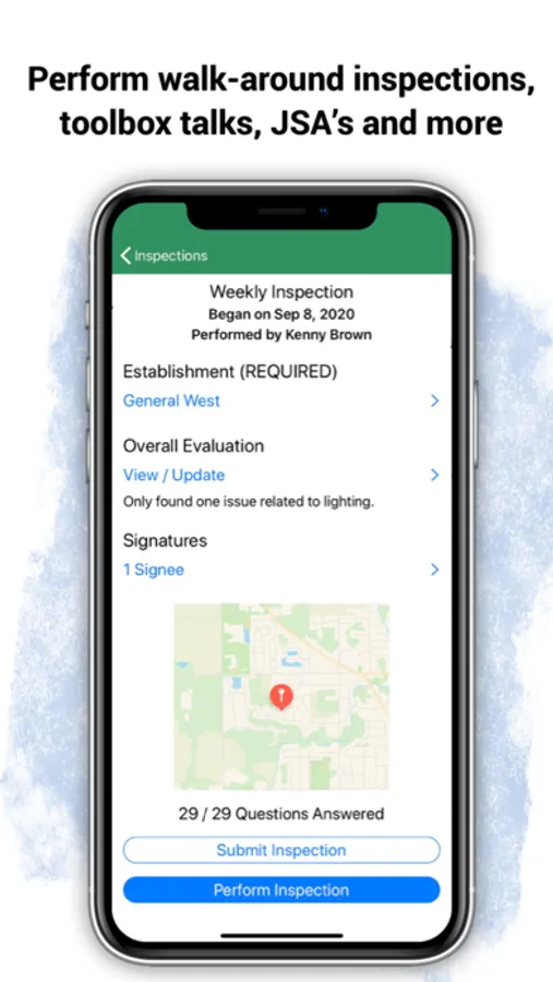Mobile Inspection App – Perform walk-around inspections, toolbox talks, JSA’s and more.