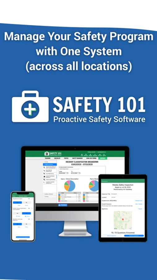 The Safety 101 mobile inspection app works in conjunction with the Safety 101 web-application, which includes the following features: