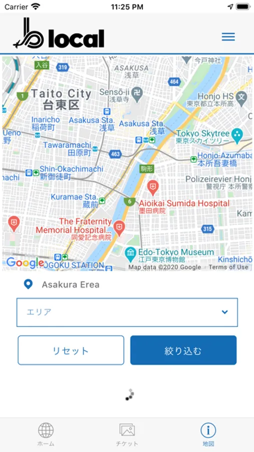 近隣のチケット利用可能施設を地図で探せます。
