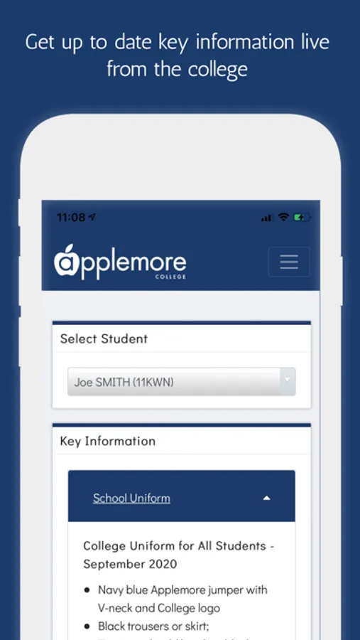 A specific App for Users of the Applemore College Community - Staff, Students and Parents to allow communication between the College and Home.