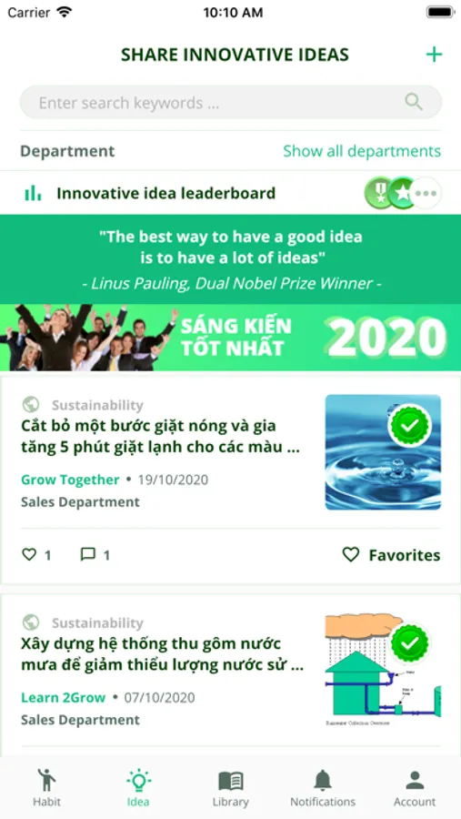 Each of us has the creative potential and each of us has the power to unleash it. This feature helps you share your innovative ideas anywhere, anytime to your colleagues to grow together. Dual Nobel Prize winner, Linus Pauling once emphasized: "The best way to have a good idea is to have a lot of ideas."