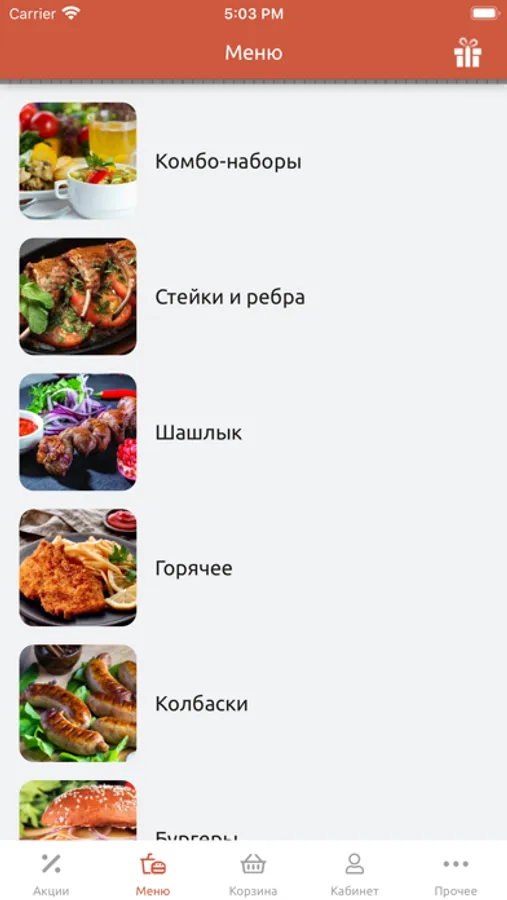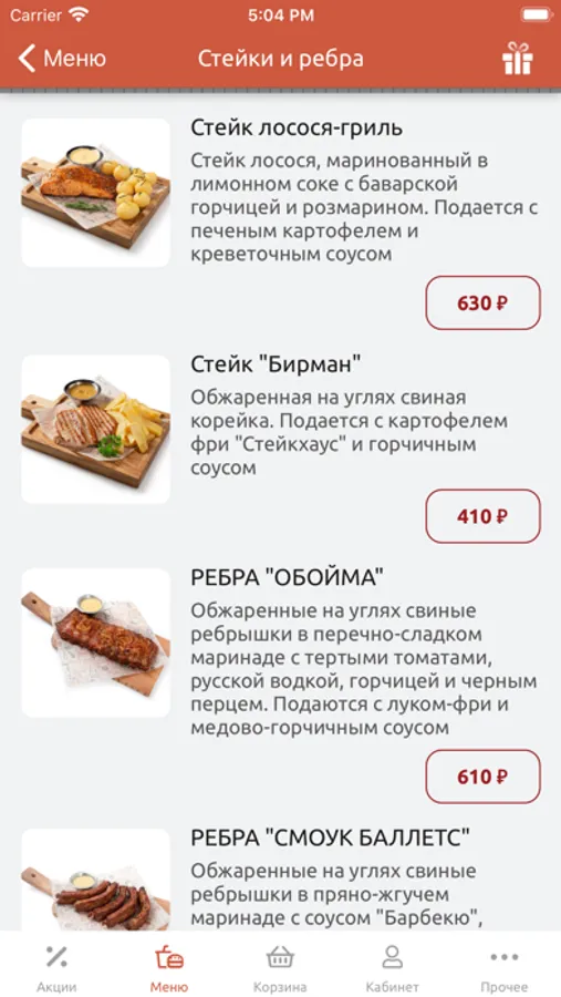 стейки и ребра (свинина и рыба);