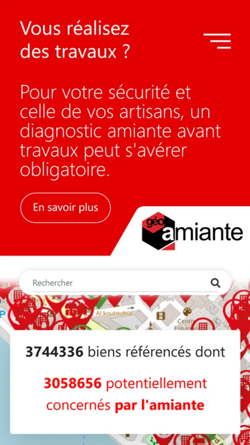 L'application Géoamiante permet de localiser le risque amiante proche de vous.
