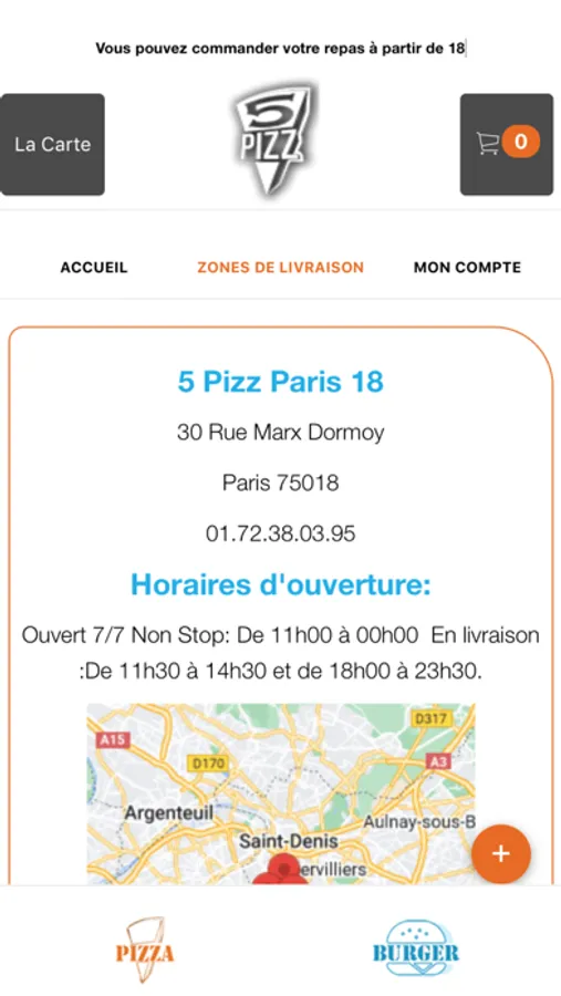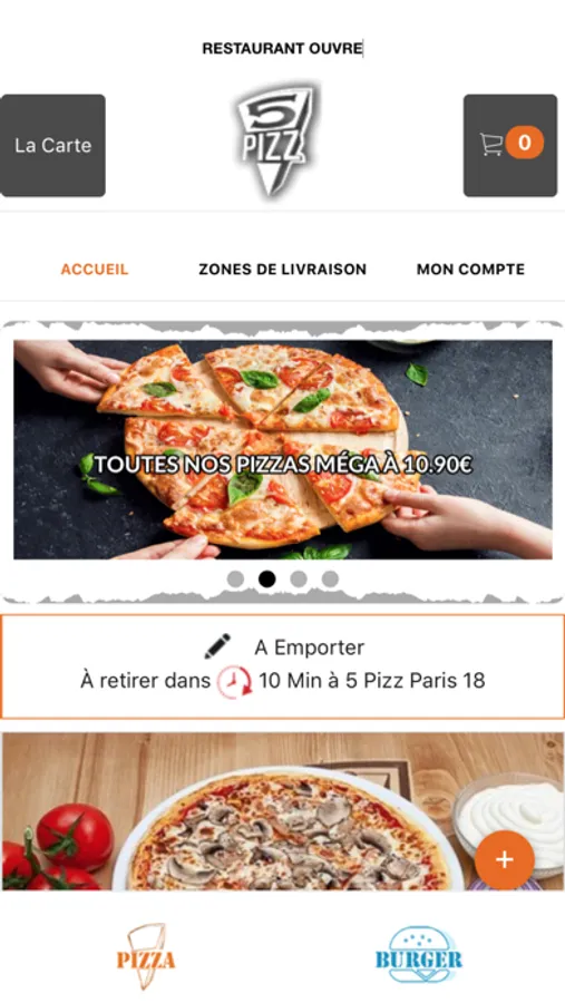 L'application 5 Pizz , vous permet de commander en ligne ou par téléphone via votre application. Vous pouvez consulter notre carte et choisir vos produits.