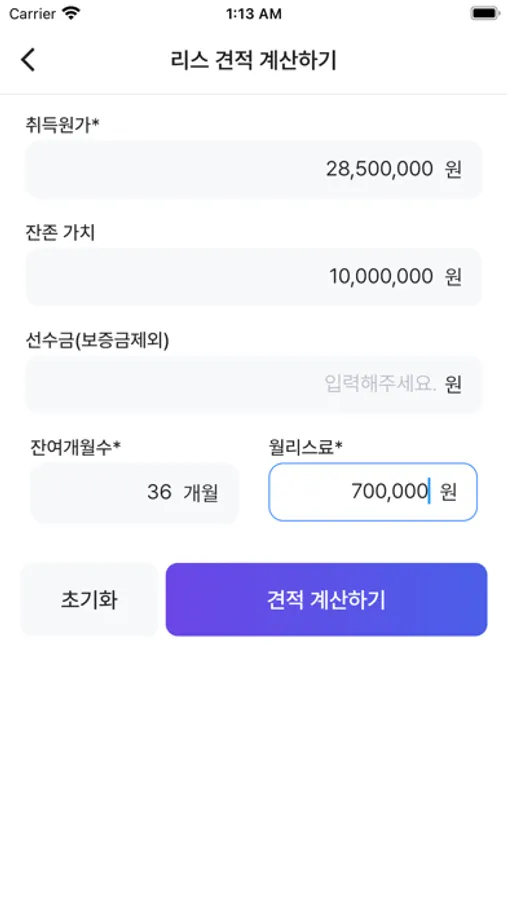 리스 금리를 계산하는 앱입니다.