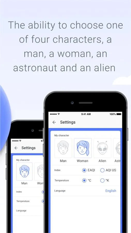 • The ability to choose one of four characters – a man, a woman, an astronaut, and an alien.