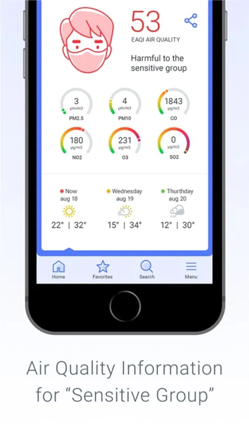 The YourAirTest app is designed for a healthy future for people to help reduce the impact of poor air quality on human health. With the help of machine learning YourAirTest provides the most accurate data on 6 Key Pollutants: particulate matter PM2.5 and PM10, O3 (ozone), NO2 (nitrogen dioxide), SO₂ (sulfur dioxide), and CO (carbon monoxide).