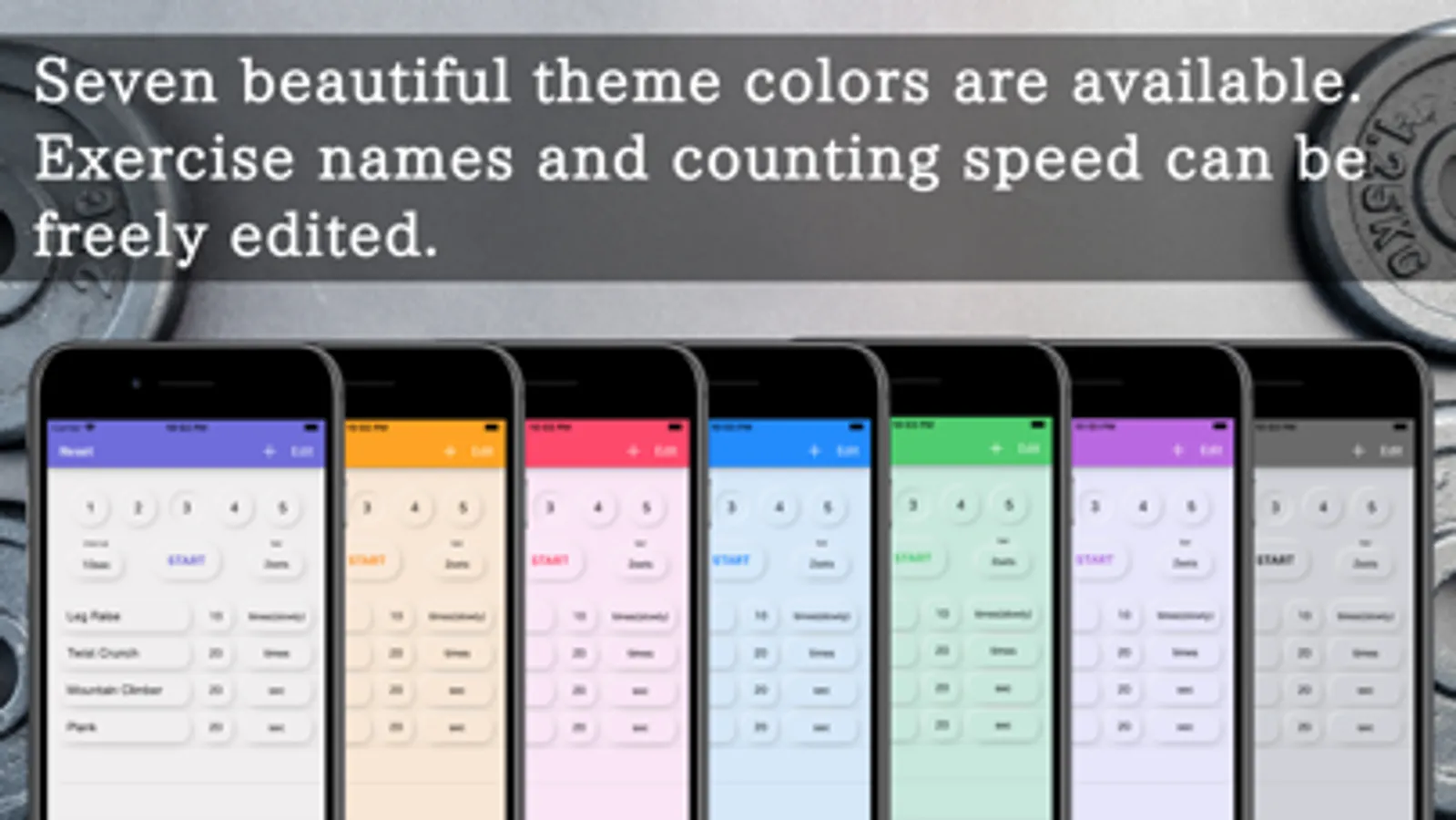 You can choose from 7 theme colors, so you can work out with a fresh feeling at any time.