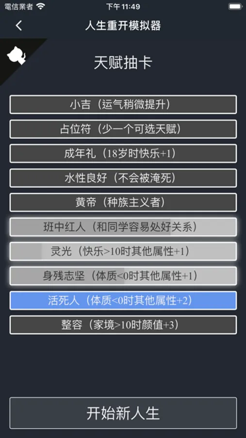 本App参考了Life Restart开源项目,基于MIT License许可,使用Objective-C和Swift编程语言进行了重新开发和部分修改。