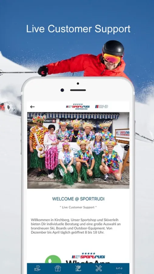 Die SKI-ID App von SPORTRUDI ist dein digitales Treueprogramm und Urlaubsbegleiter! Du kannst ganz einfach durch unterschiedliche Aktivitäten Punkte sammeln und diese gegen tolle Prämien einlösen. Mehr Informationen zu Produkten und Diensten? Gerne über den interaktiven Ski-iD Live Kundenservice.