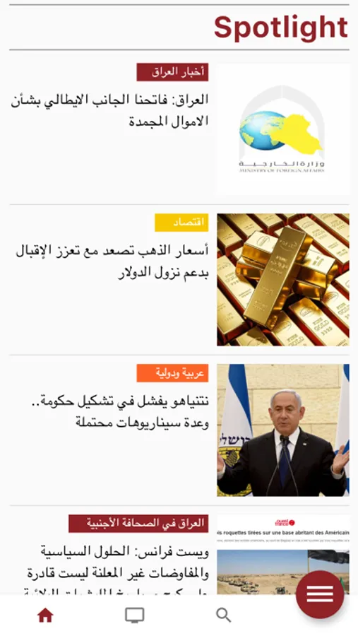 يتضمن التطبيق بثًا مباشرًا، وقناتين تلفزيونيتين، ومقالات إخبارية من العراق وحول العالم، بالإضافة إلى أفكار وتعليقات