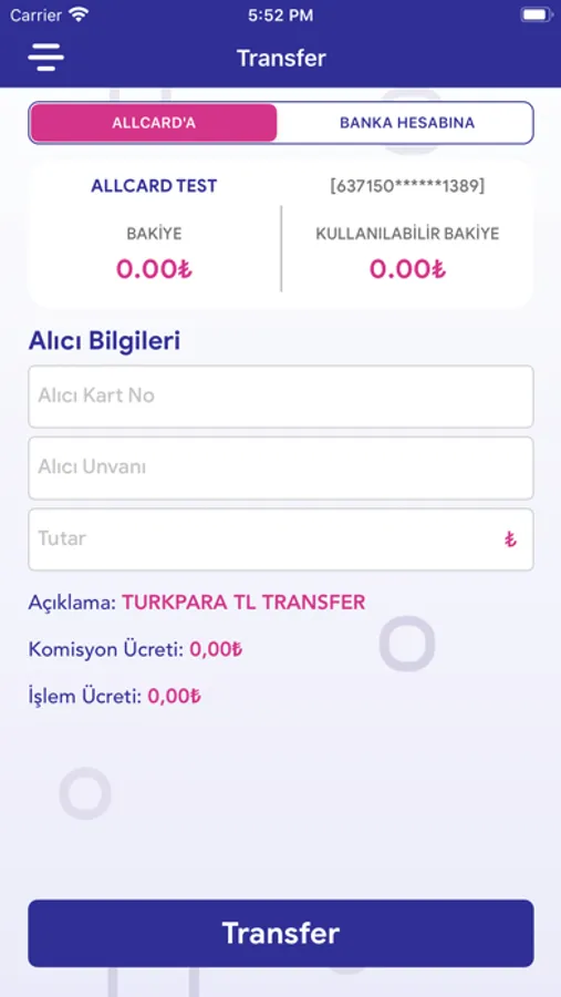 AllCard hesabın ile bankaya gitmeden banka hesaplarına ve kredi kartlarına EFT ile para gönderebilirsin. Dilersen başka AllCard hesaplarına da 7/24 para gönderebilirsin.