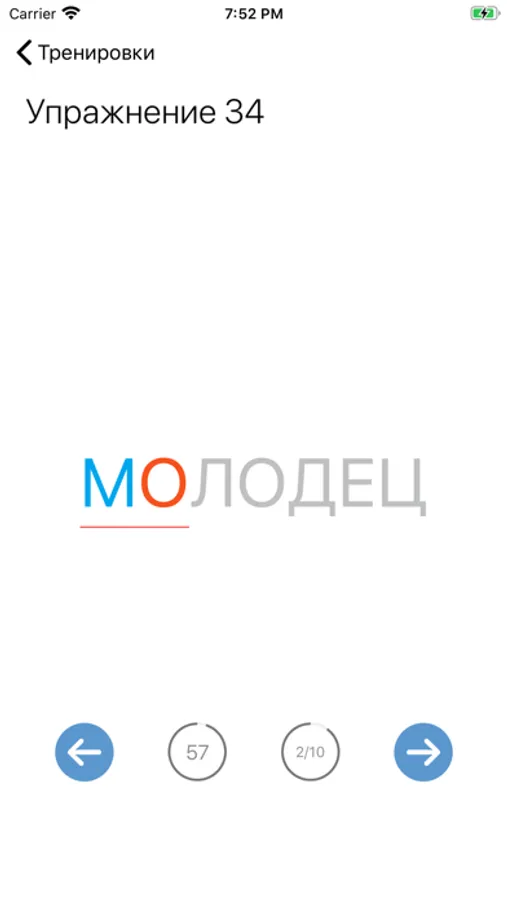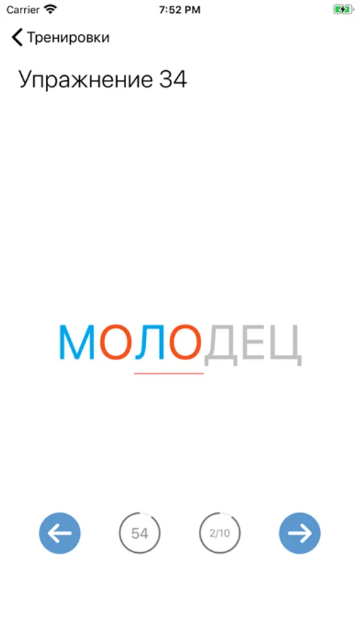 Попросите ребёнка прочитать подсвеченный слог. Как только он его прочитал, нажмите стрелку вправо для перехода к следующему слогу/слову.
