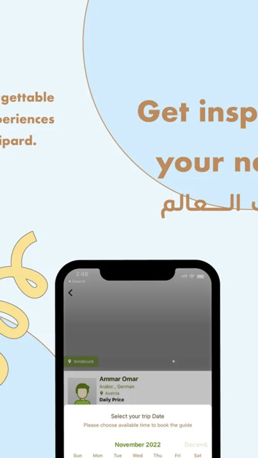 قم بتنزيل التطبيق لحجز مرشدك السياحي في أي مكان تريد الذهاب إليه.