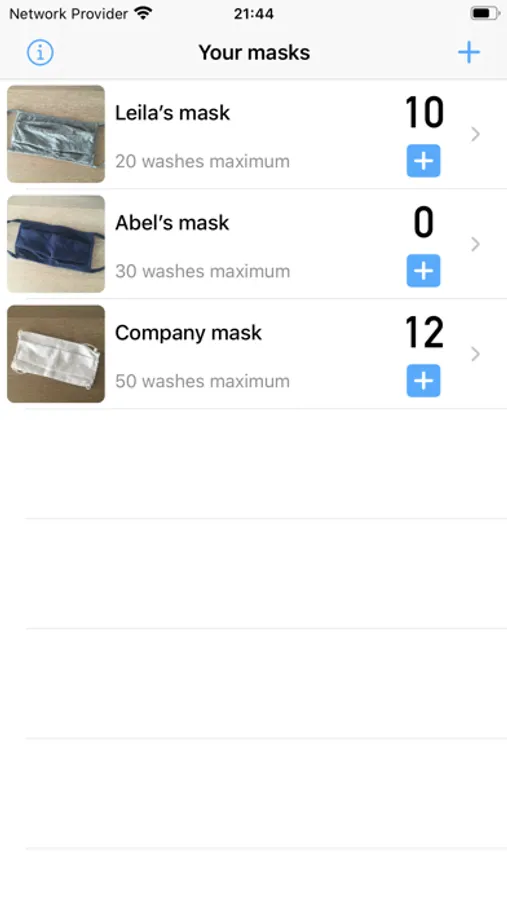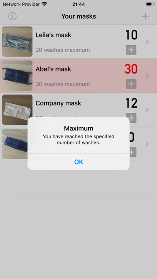 CleanMask helps you track the number of washes of your cloth masks, in order not to exceed the maximum number provided by the manufacturer.