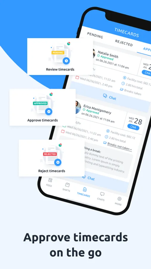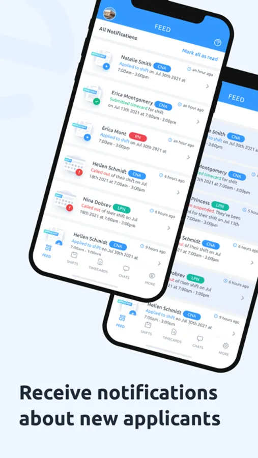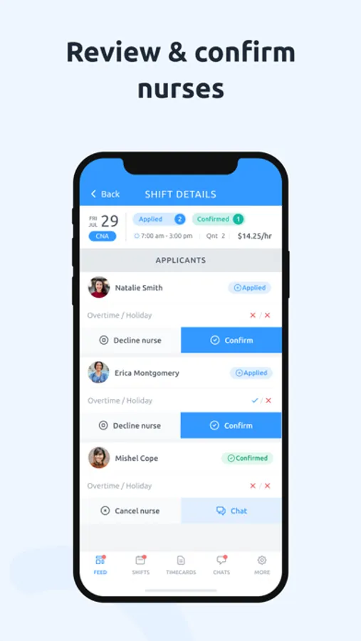 Our ESHYFT app for Facility Managers lets you manage your facility on the go, you can use it to accept nurses, approve time cards, chat with your nurses, post shifts, and more.