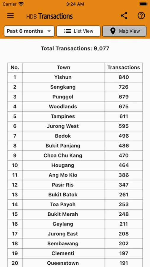 - List HDB Transaction in different towns