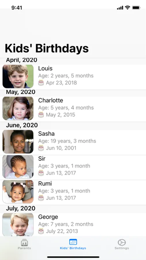 If it hasn’t already happened, soon all your friends with have kids. Before no time you won’t even be able to remember all the kids’ names, let alone how old they are. With Kids Birthdays, you will come off looking like a whiz when you can name every kid in the family. And know their age!