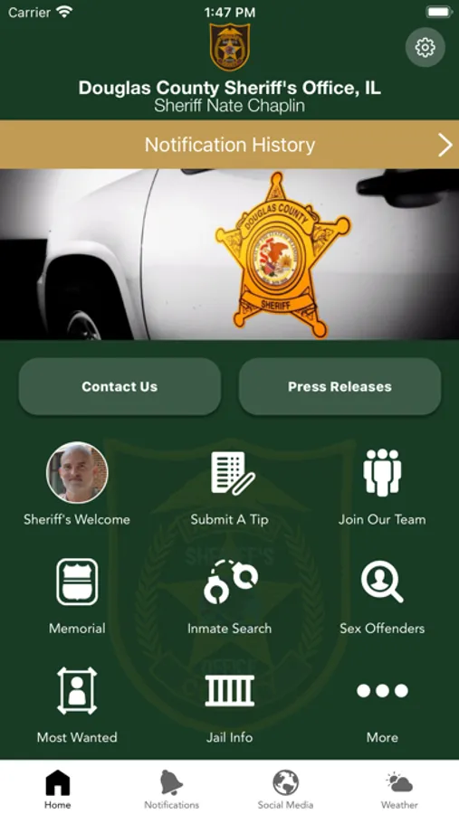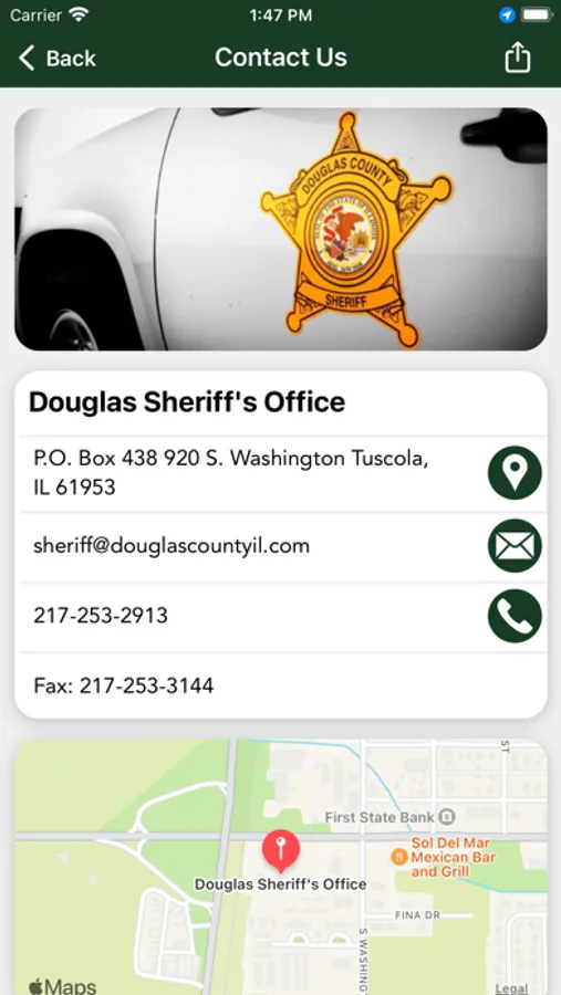 The Douglas County Illinois Sheriff’s Office mobile application is an interactive app developed to help improve communication with area residents. The Douglas County Sheriff App allows residents to connect with the Douglas County Sheriff’s Office by reporting crimes, submitting tips, and other interactive features, as well as providing the community the latest public safety news and information.