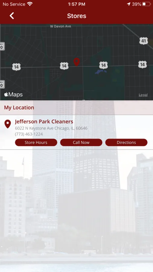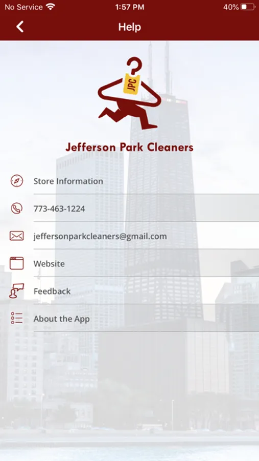 5) Quickly contact Jefferson Park Cleaners by phone or email and access their website all directly from your device.