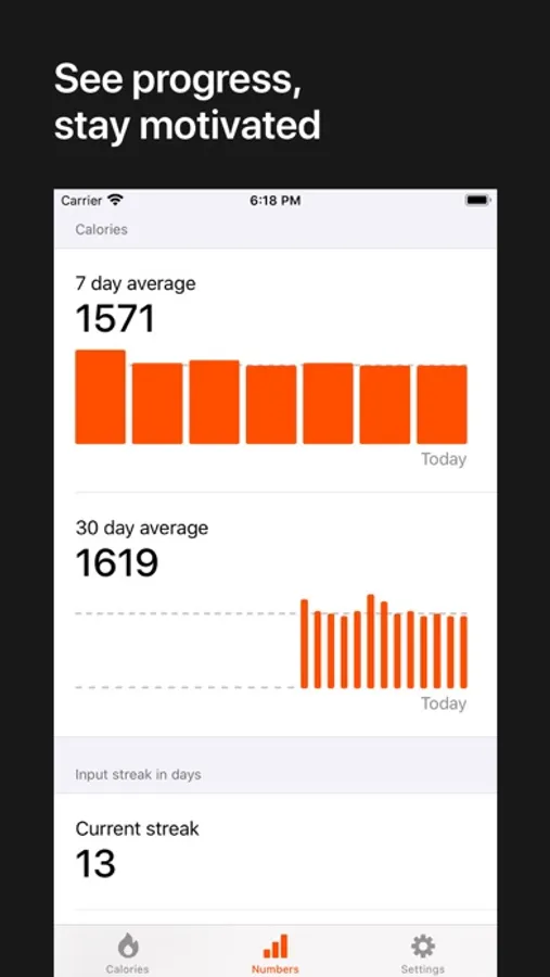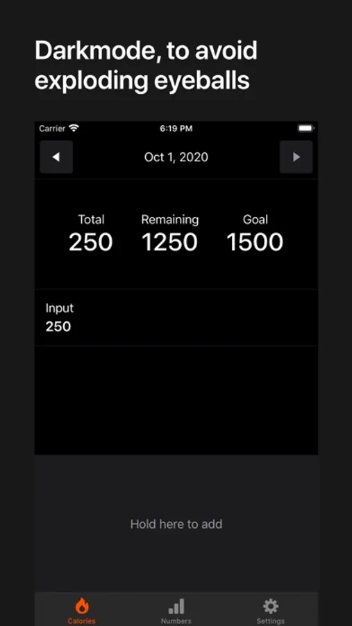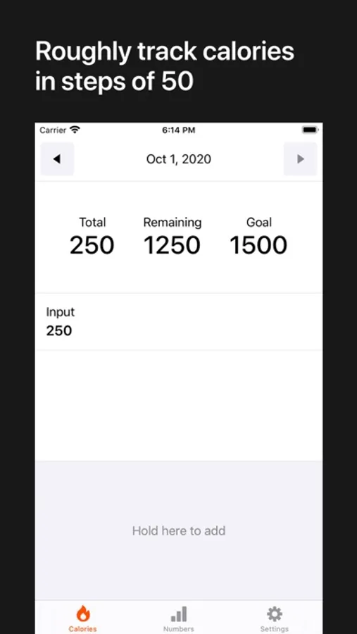 Kalories helps you roughly estimate calories instead. Just drag and release to add in steps of 50.