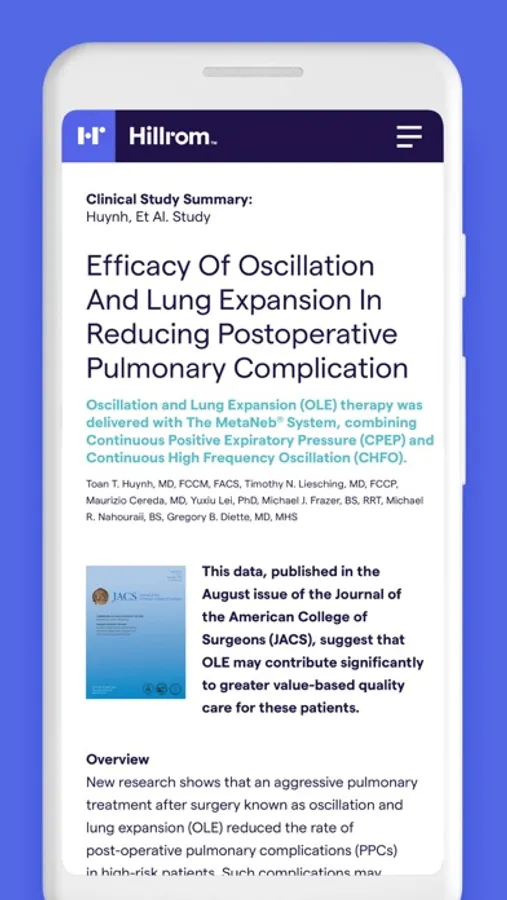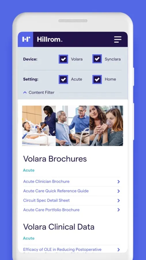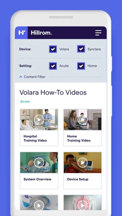 Helpful resources at your fingertips for using the Hillrom Volara™ System for oscillation and lung expansion (OLE) therapy and the Synclara™ Cough System for mechanical insufflation-exsufflation (MIE) therapy. The app is a go-to tool when using these systems for CPEP, CHFO, Nebulizer, and Cough Simulation therapy. From hospital to home,