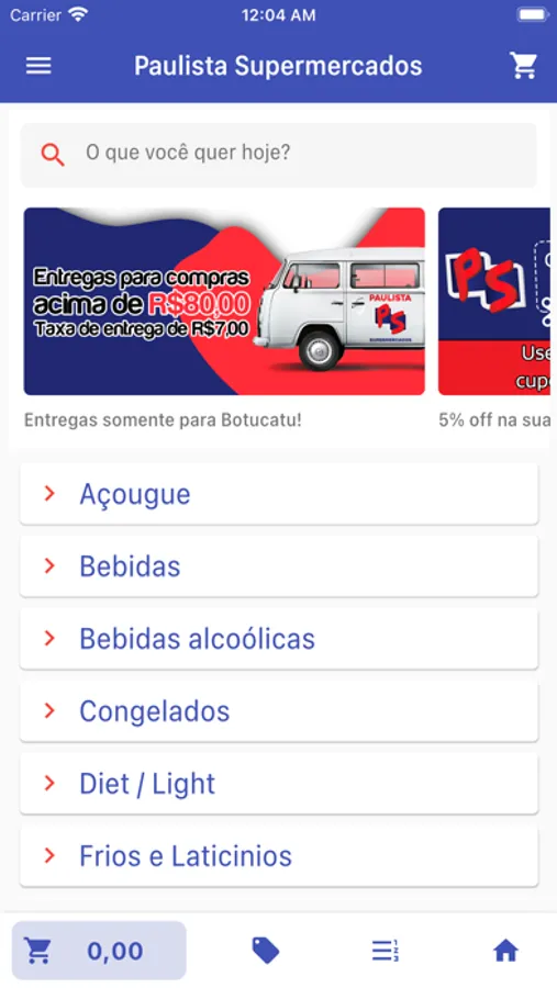 É um aplicativo exclusivo do Paulista Supermercados que você pode baixá-lo agora em seu celular e aproveitar as facilidades para a realização de suas compras em qualquer lugar e receber na comodidade da sua casa na cidade de Botucatu-SP