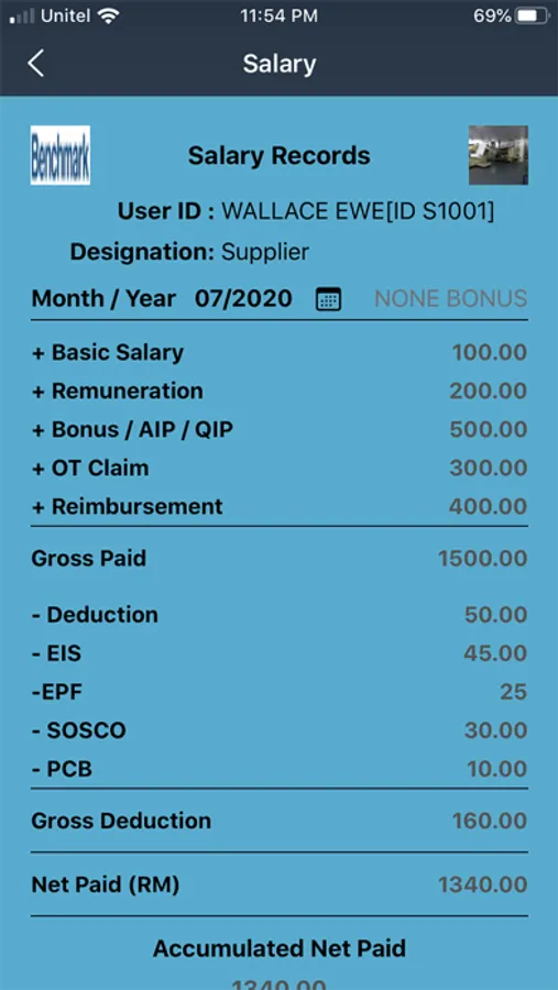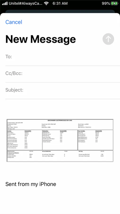 Company staff can login with his/her employee id and password, and select Year/ Month and type, they can see his monthly salary and send his/her monthly payslip to social media such as whatapps and email.
