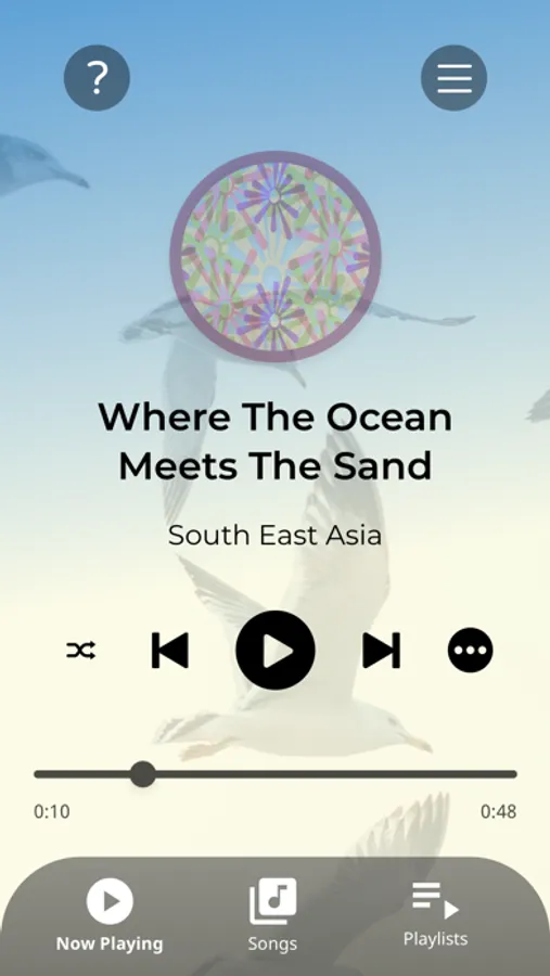 In background mode, the app detects the world region of the music that was being played, and plays a loop of all the pieces from that region, and is interrupted once you resume using the app.