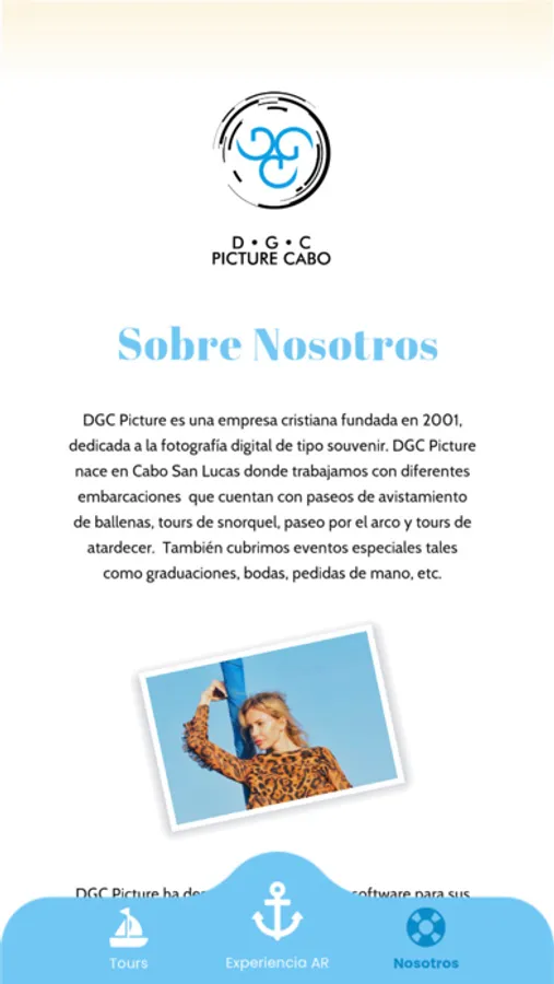 La app de DGC Picture proporciona la información de los tours y embarcaciones donde contamos con el servicio de fotografía. Disfruta de nuestros filtros para tus fotos y de la experiencia de realidad aumentada que tenemos para ti.