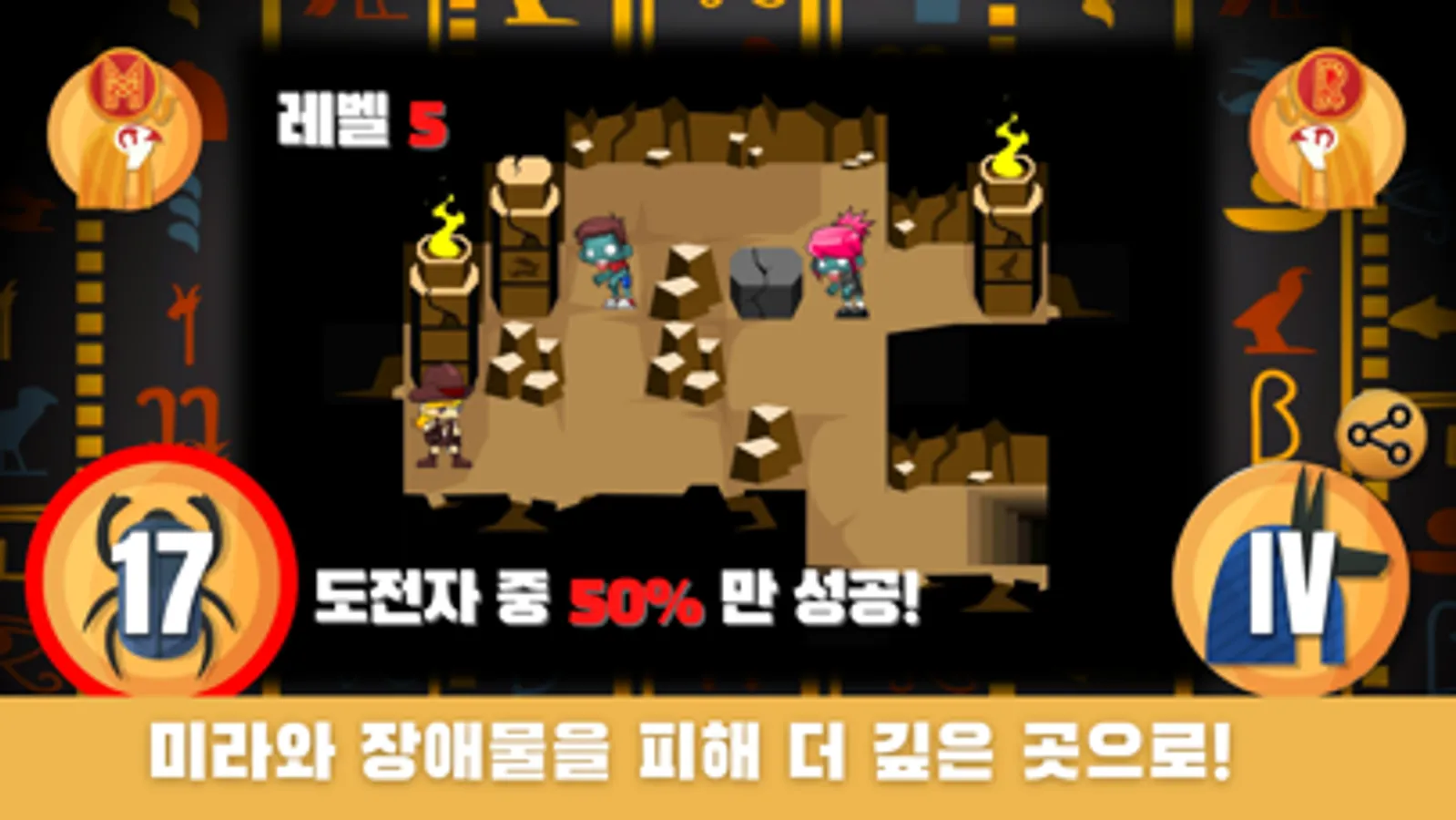 To go downstairs, you have to reach the stairs that go downstairs, but a hunter can only move a limited number on each floor. You need to overcome traps, obstacles, and mummies to find treasure.
