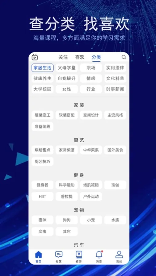 生活工作十大垂类的实用知识,通过一级目录、二级目录、三级目录向下细分,让专业的老师分享颗粒度更细的知识领域,帮助用户更精准的学习自己需要的知识垂类。