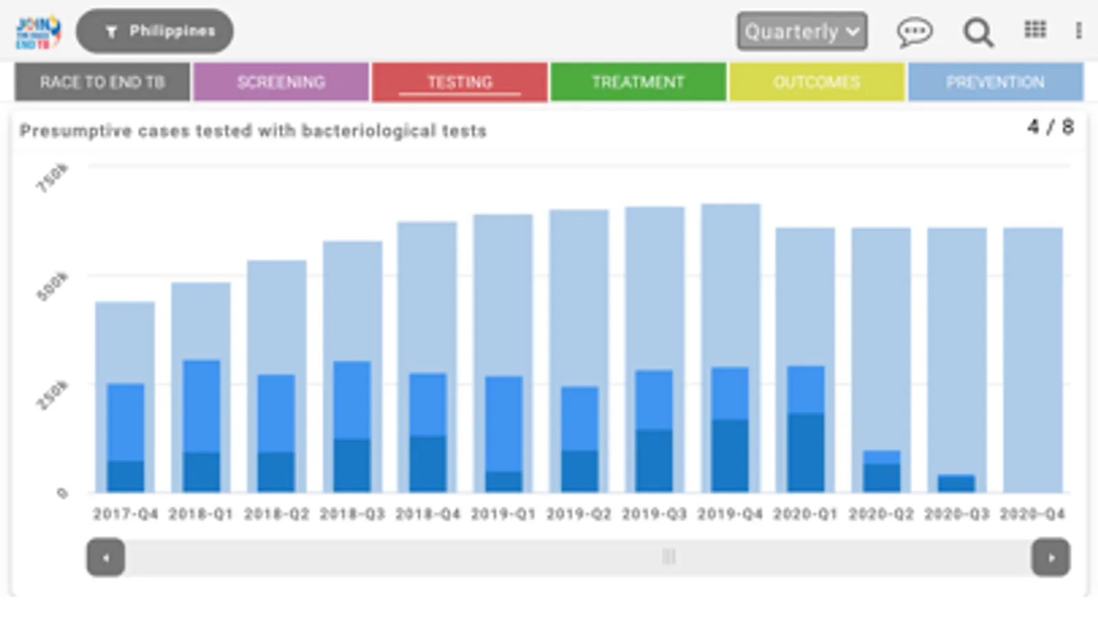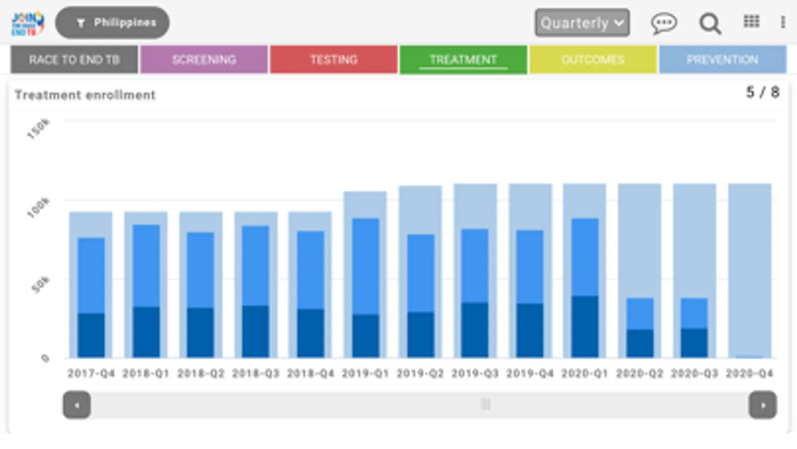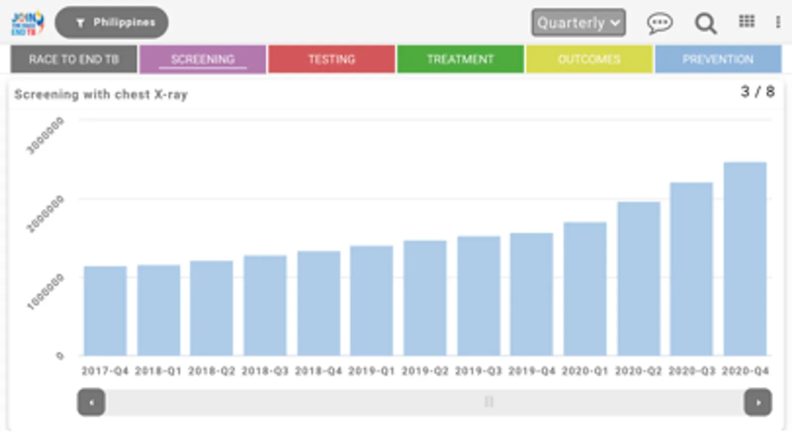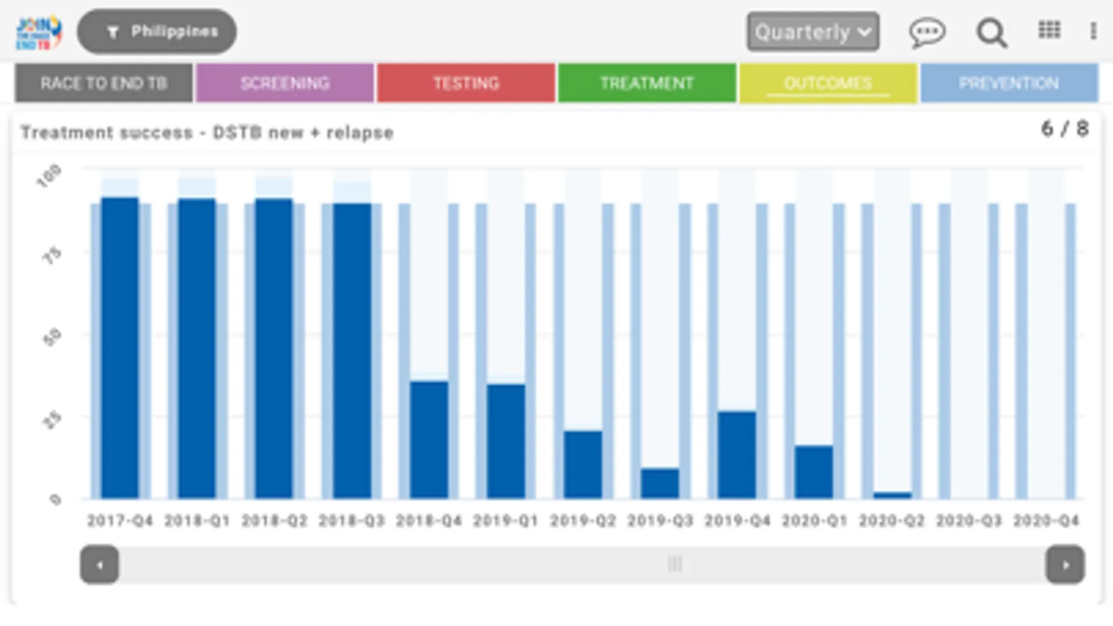 See achievements for major indicators under screening, testing, treatment, outcomes and prevention