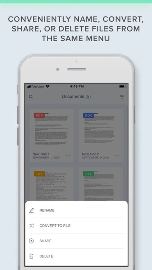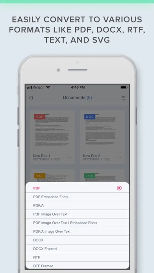 - Convert documents into many different formats including; PDF, PDF/A, DOCX, SVG, RTF, and more