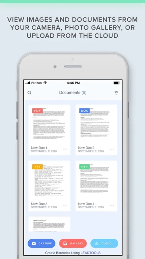 The LEADTOOLS Document Viewer gives users the ability to view, share, and convert documents and images into many different file formats. Users have a variety of options to upload documents through live capture, photo gallery, or the cloud.