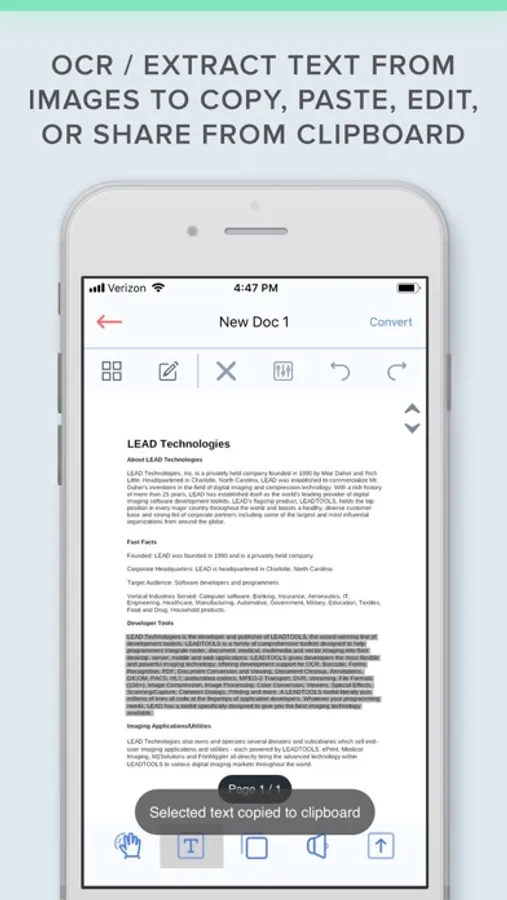 - Text-to-Speech "Speak" option for phone playback of extracted text