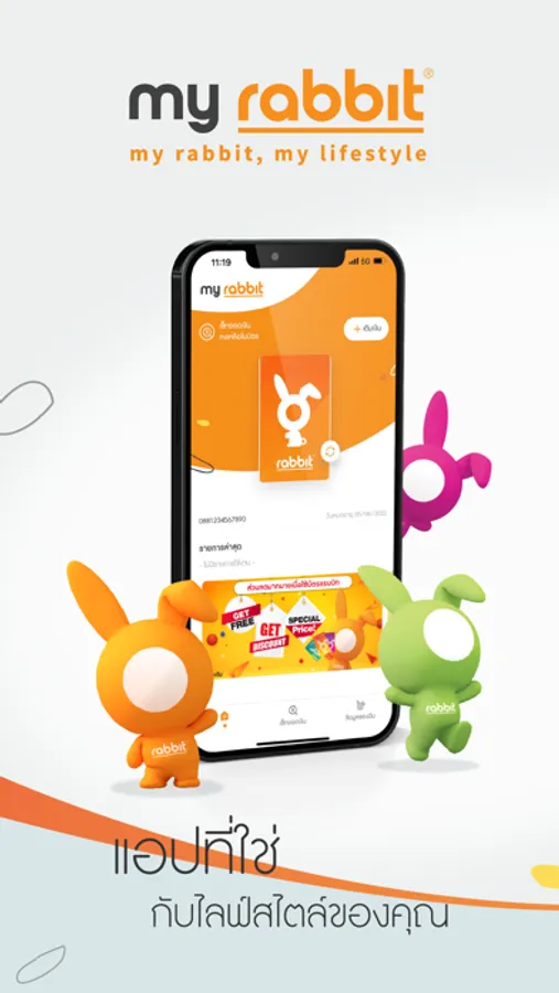 My Rabbit แอปพลิเคชันที่จะทำให้คุณใช้งานบัตรแรบบิทได้ง่ายและสะดวกสบายมากกว่าที่เคย ด้วยฟังก์ชันการเติมเงินเข้าบัตรแรบบิท เช็กยอดเงินคงเหลือ และเช็กรายการใช้งานล่าสุด คุณสามารถทำได้ง่าย ๆ เพียงแตะบัตรแรบบิทที่ด้านหลังโทรศัพท์มือถือ และทำตามขั้นตอน นอกจากนี้ยังสามารถติดตามข่าวสารอัปเดต โปรโมชันสุดคุ้มจากร้านค้าและบริการต่าง ๆ ได้ทุกที่ ทุกเวลา และยังได้รับความคุ้มครองเพิ่มเติมพร้อมรับบริการพิเศษต่าง ๆ จากแพ็จเกจ “Rabbit Worry-Free” โดย แรบบิท แคร์ ได้อีกด้วย