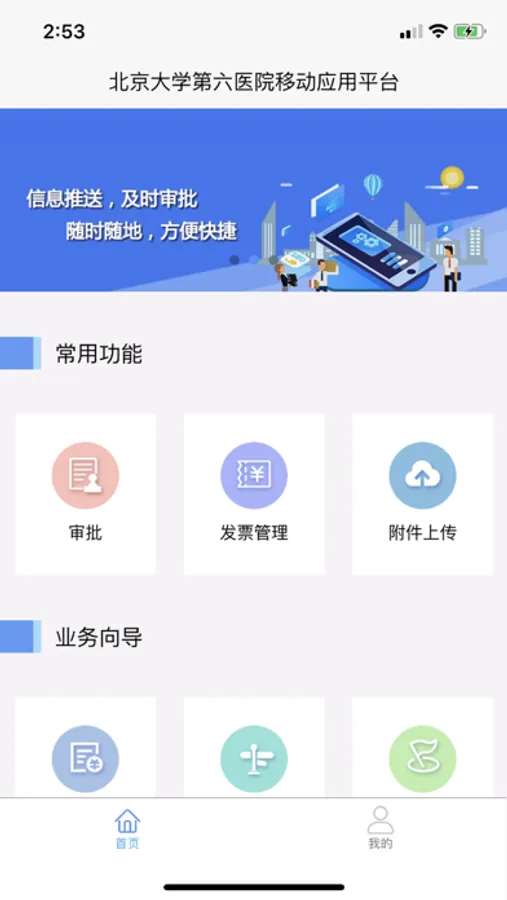 北京大学第六医院财务服务平台,提供线上审批、发票管理、附件上传、业务向导、统计报表等功能,方便在移动端管理财务部门业务。