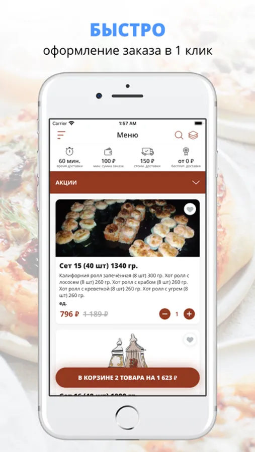 Быстрая доставка и вежливые курьеры порадуют вас качественной едой, заказывайте и не пожалете!
