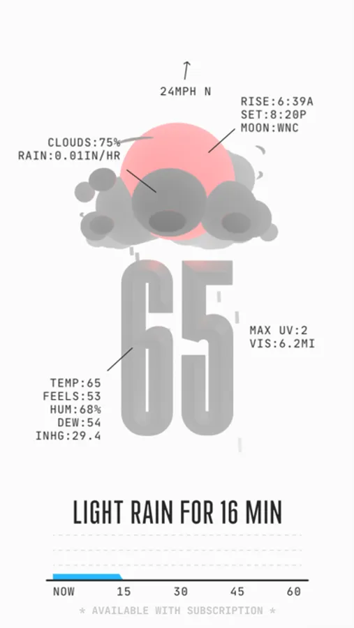 This is the *real* weather, not a simplistic interpretation. We pull every weather data point (cloud coverage, wind speed, precipitation, visibility) to simulate the real weather in a single scene you can feel. Sunny and windy and raining all at the same time? No problem. More honest, more accurate, and yet simpler.