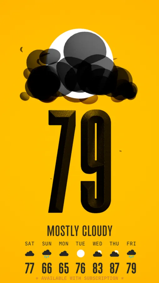 Next generation user interface designed and built in 3D with animation and sounds inspired by video games. Hear the rain and feel the thunder. Wind that blows rain based on actual wind speed and direction. Real moon phases.