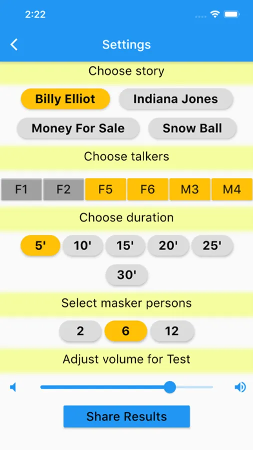 You are listening to 4 selected stories which are narrated in a noisy environment and you need to select words that you heard from the presented list. You can select amount of noise and number talkers that will narrate the stories, which randomly change over time. The recommended training duration is 30 minutes per day.