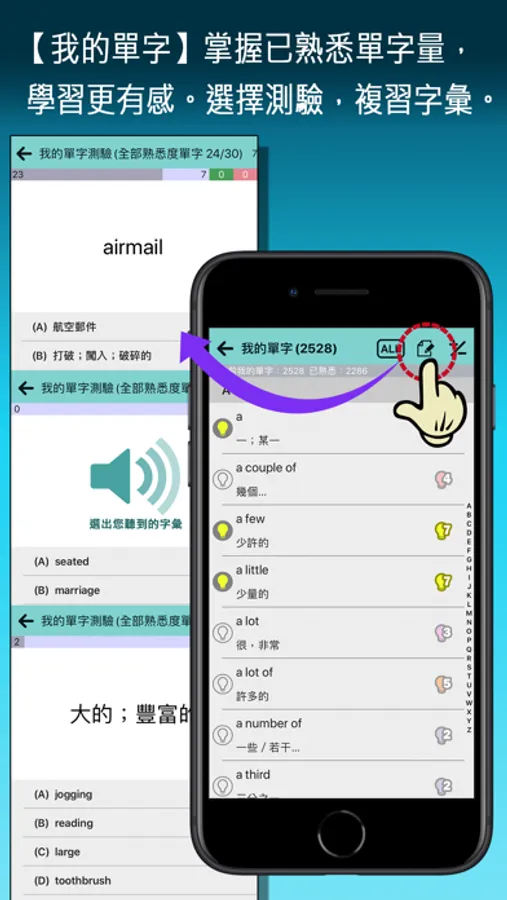 10. 我的單字,可掌握自己的單字量 ,並選擇測驗,複習字彙。